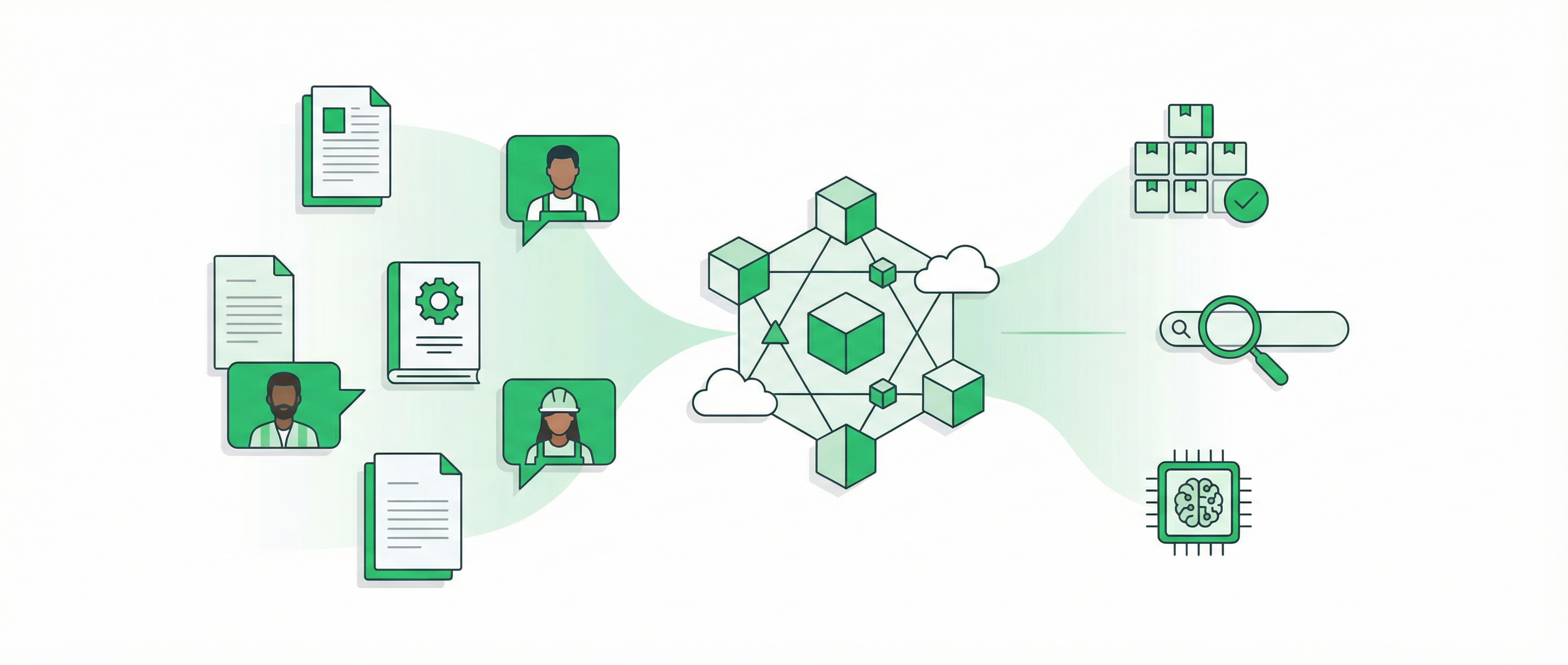 社内に散らばった技術情報やベテラン社員の暗黙知を収集・構造化。人にもAIにも扱いやすいノウハウが失われない仕組みを構築します。