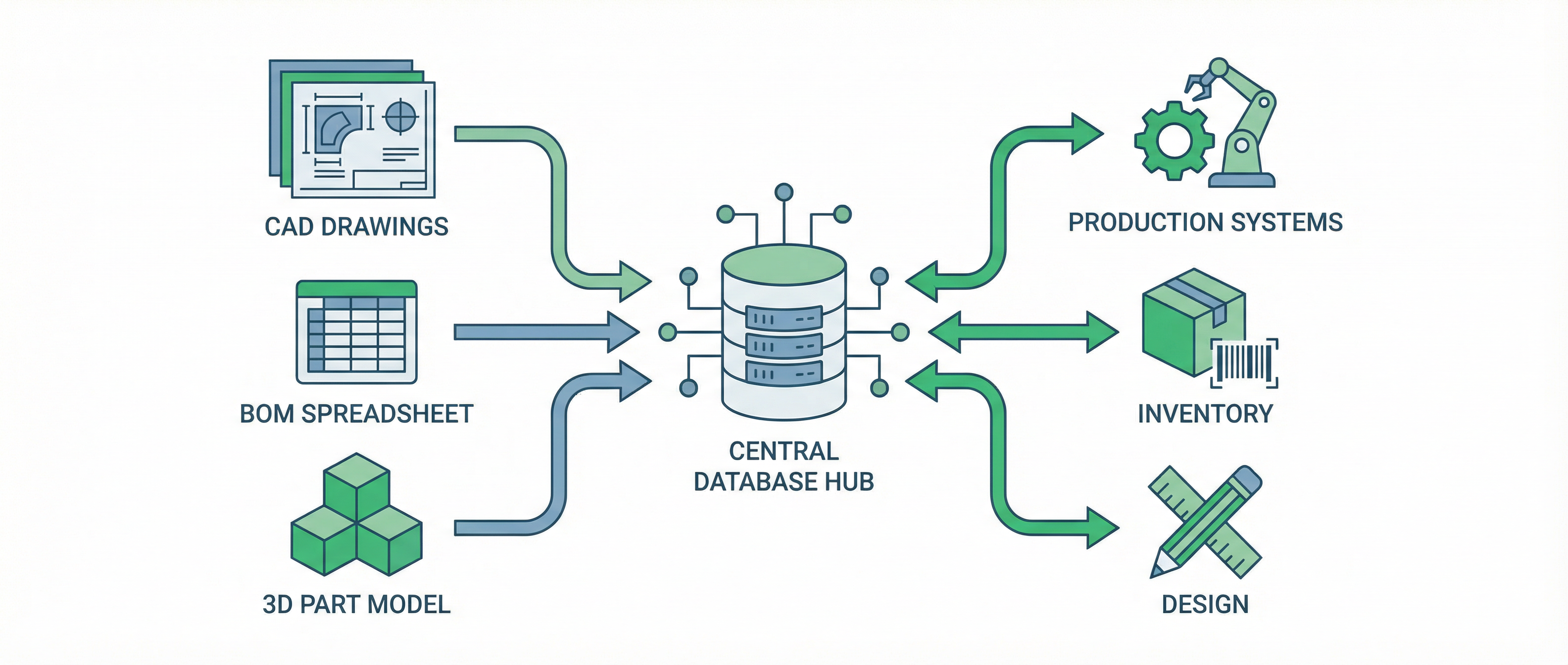 BOM(部品表)やCAD・図面データを一元管理し、製品情報の検索・共有を効率化。製品ライフサイクル全体を通じた情報管理基盤を構築し、設計から製造・保守までの情報活用を支援します。